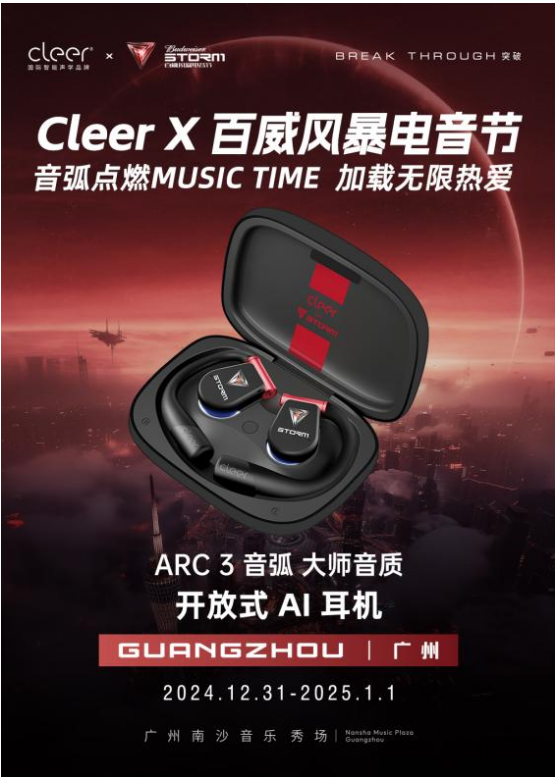 在這樣的氛圍中,Cleer與百威風(fēng)暴電音節(jié)驚喜聯(lián)名,推出專屬聯(lián)名款-Cleer ARC 3 音弧 開放式AI耳機,當精湛的聲學(xué)科技遇上狂熱的電音文化,會碰撞出怎么的火花?