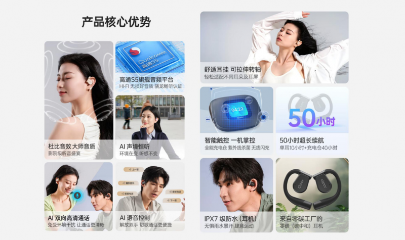 當(dāng)然,除了音質(zhì)與AI之外,Cleer ARC 3 音弧帶給你的舒適呵護(hù)也是獨(dú)一無二的。為了進(jìn)一步提升舒適體驗,Cleer ARC 3 音弧在開放式耳機(jī)基礎(chǔ)上,獨(dú)創(chuàng)了可拉伸旋轉(zhuǎn)的耳掛設(shè)計,可以根據(jù)你的耳朵大小個性化調(diào)整耳掛的長短及旋轉(zhuǎn)角度,帶來量身定制的舒適佩戴體驗。即便連續(xù)佩戴3、4個小時,耳朵也不會感到壓迫或疼痛,無論是在辦公桌前埋頭工作,還是在沙發(fā)上追劇放松,這種“云感佩戴”讓你忘記耳機(jī)的存在,沉浸在純粹的音樂世界里。