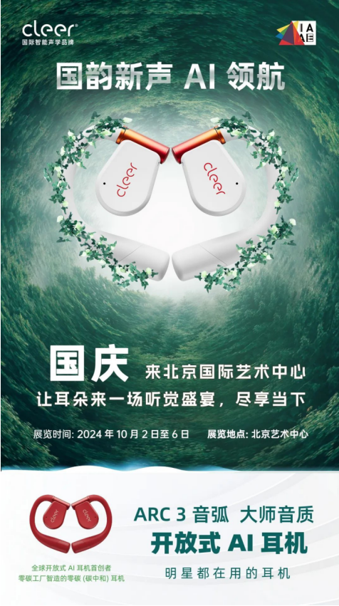 此次博覽會(huì)將持續(xù)至10月6日,如果你也對(duì)智能聲學(xué)和創(chuàng)新音頻產(chǎn)品感興趣,可前往現(xiàn)場(chǎng)Cleer展區(qū)親自體驗(yàn)這款集多項(xiàng)全球首創(chuàng)技術(shù)的Cleer ARC 3 音弧 開放式AI耳機(jī)。此外,展會(huì)期間還將有各種精彩活動(dòng)及福利等待大家,敬請(qǐng)參觀!